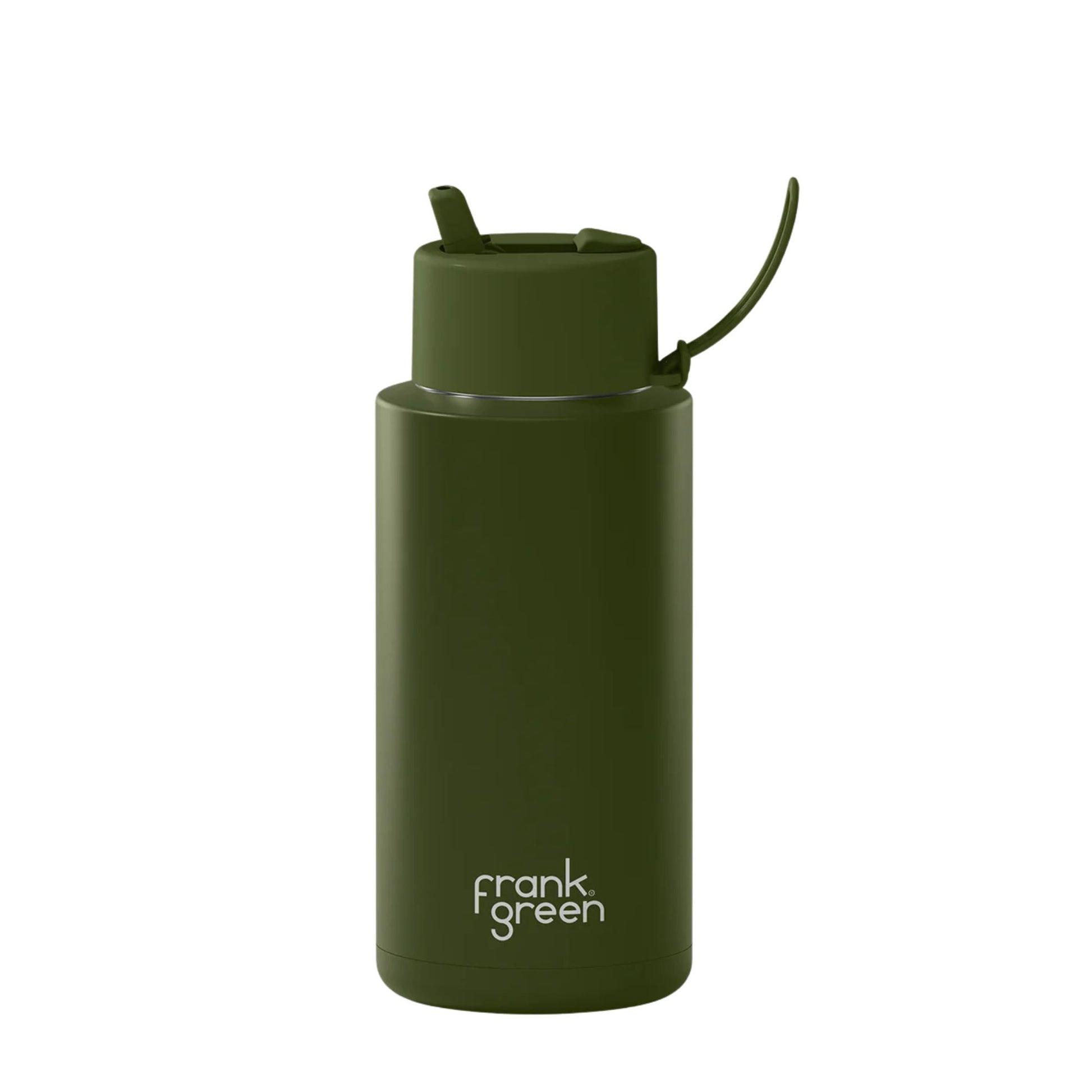 Frank Green 34oz Stainless Steel Ceramic Reusable Bottle with Flip Straw Lid - Khaki