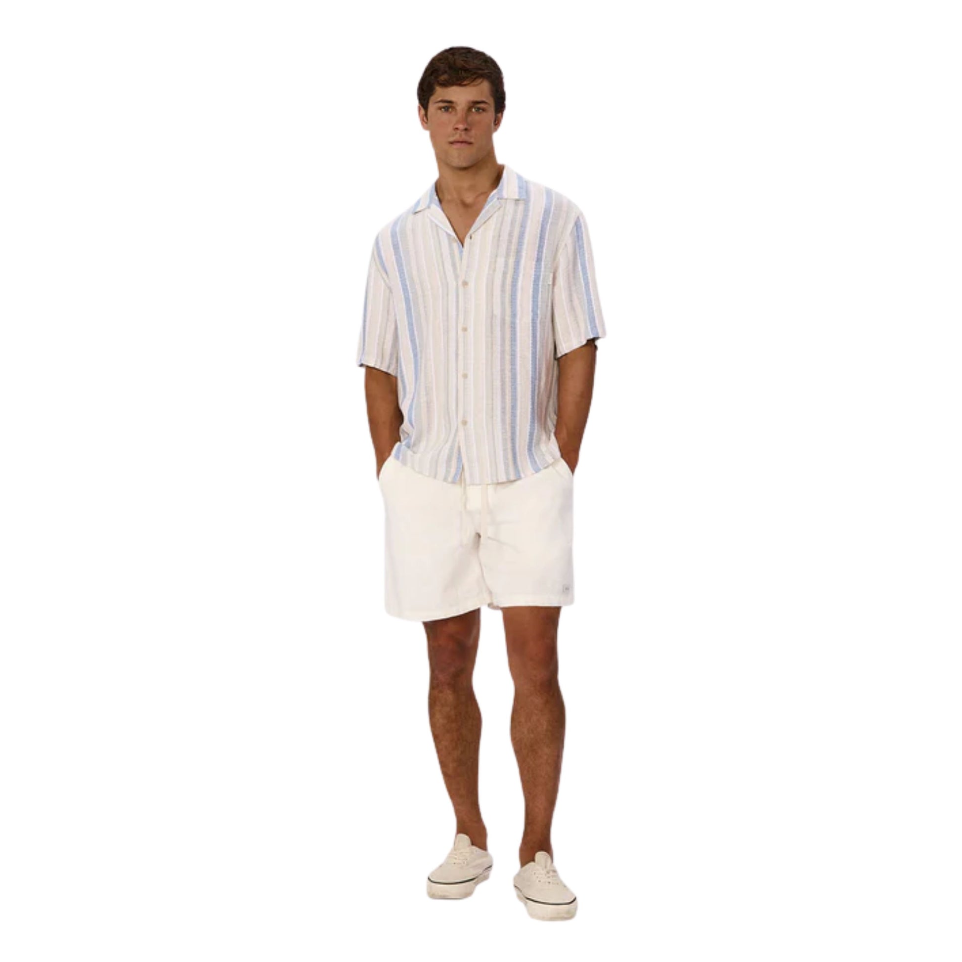 Constructed from a breathable, textured linen blend fabric and featuring muted multicoloured stripes, The Oakfield Short Sleeve Shirt is perfect for poolside days or casual summer adventures. Designed with a camp collar, button closure, chest pocket and side splits, it will be your go-to shirt for sun soaked style.
