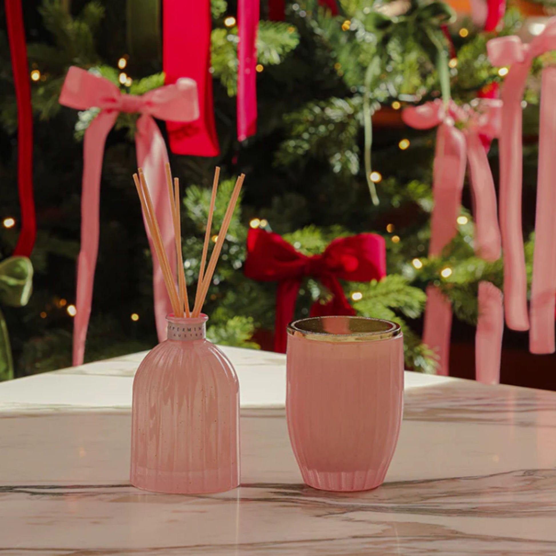 This limited edition soy candle is wrapped in love, housed in a blush pink vessel and speckled with glittering gold.